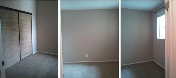 Since then we've painted the walls (it was too dark and depressing before!) and moved in my desk, etc., so here's the progress so far:As you can see, there's still a lot left to do. I love how desks look centered in the room, but the cords in the middle of the floor are definitely a hazard so I have to find a solution for that or move the desk against the wall. On the main wall I'm planning to have an Expedit shelving unit (placed horizontally) and a gallery wall with framed artwork, photos and maybe a mirror. I might move the storage units that are currently on the side wall (with the window) into the closet, depending likely on whether or not I end up moving the desk. The current rug is too small (it's the one I used to have in the closet at my old place) so I'm looking for a replacement - something that will be big enough to cover more of the not-so-pretty carpeting. We shall see! I'll post more pictures as I make more changes :)